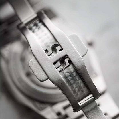 Inde i uret arbejder det præcise La Joux-Perret G100 automatiske urværk – en ægte manufakturpræstation fra Schweiz. Dette fintjusterede kaliber tilbyder en gangreserve på imponerende 68 timer og kører med en frekvens på 28.800 halvsvingslag i timen. Kombinationen af KIF Parechoc® stødsikring, 24 juveler og en kuglelejet rotor med palladiumbelægning sikrer ikke kun høj gangnøjagtighed, men også langvarig pålidelighed.