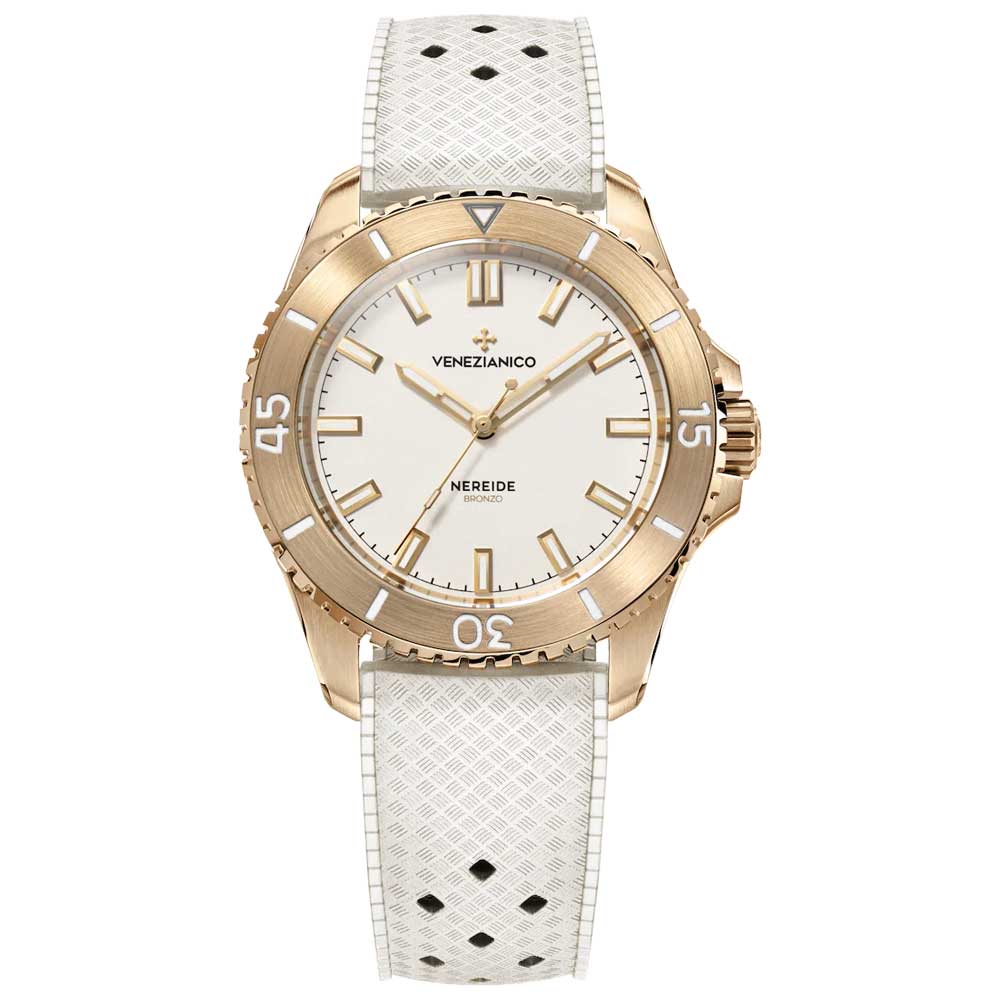 Nereide Bronzo er mere end bare et dykkerur – det er en hyldest til Venedigs kulturelle arv og byens traditionsrige håndværk. Inspireret af det legendariske metal fra „Hestene fra San Marco“, forener denne model venetiansk fortid med moderne urmagerkunst. Dens urkasse er lavet af en særlig bronzelegering, som med tiden udvikler en helt unik patina. Denne naturlige aldring giver hvert ur et individuelt præg og fortæller historien om bæreren på en uforlignelig måde.