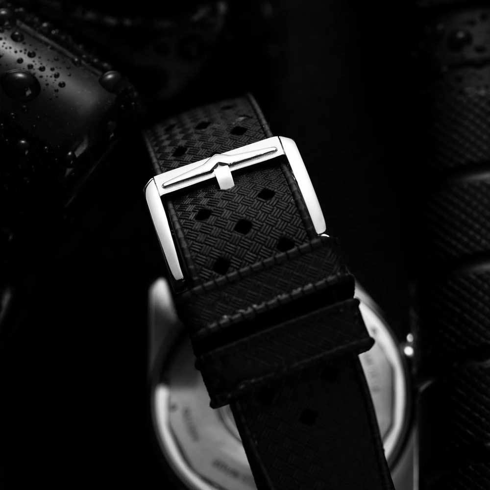 - Remfæste / spænde: 20x16 mm, massivt spænde i rustfrit stål 316L