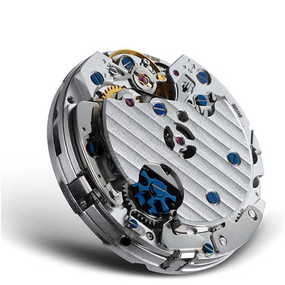 - Zeiger: Ebenfalls mit Super-LumiNova® C3 GL beschichtet; Minuten- und Sekundenzeiger leicht abgebogen zur Vermeidung von Parallaxefehlern