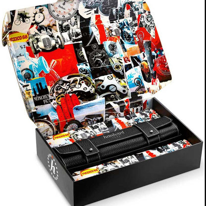 - Material: Hochwertiges Rindleder mit weißer Ziernaht, erhältlich in den Farben Schwarz, Dunkelbraun und Hellbraun
