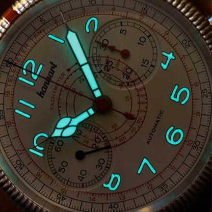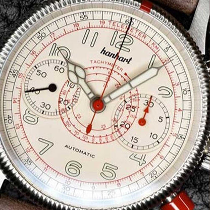 Bereits in den 1930er Jahren setzte Hanhart Maßstäbe in der Welt der hochfunktionellen Chronographen. 1938 entwickelte das Unternehmen speziell für Marineoffiziere den Ein-Drücker-Chronographen, ausgestattet mit dem selbst entwickelten Kaliber 40. Nur ein Jahr später folgte die Einführung der ersten Fliegerchronographen mit dem Kaliber 41, das sich durch ein Schaltradwerk mit Flyback-Funktion auszeichnete. In den 1990er Jahren entschied sich die schweizerisch-deutsche Uhrenmarke dazu, originalgetreue Nachbauten dieser legendären Modelle auf den Markt zu bringen und knüpfte damit erfolgreich an ihre lange Tradition und technologische Expertise an.