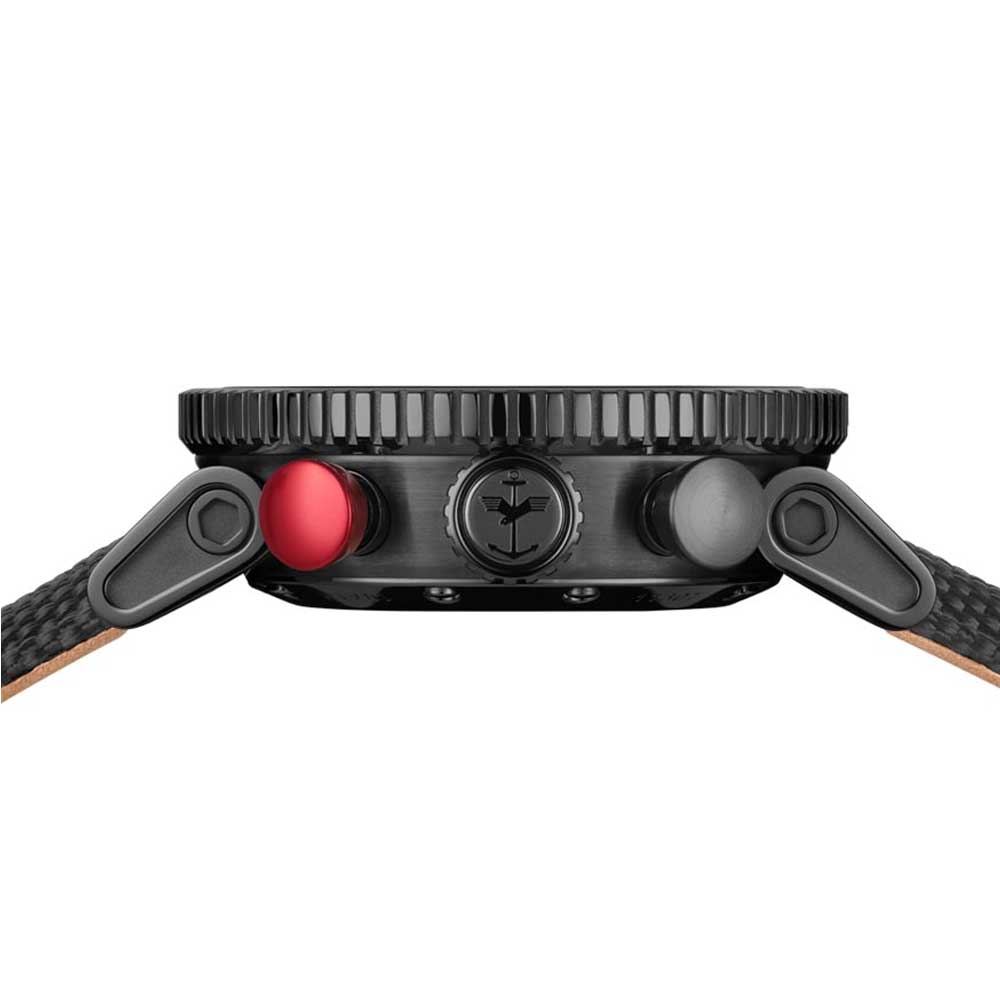 Ein besonderes Merkmal der PRIMUS Uhren sind die flexiblen Bandanstöße, die für höchsten Tragekomfort sorgen – selbst bei einem imposanten Durchmesser von 44 mm. Der Chronograph vereint robustes Design mit angenehmer Ergonomie, was ihn sowohl für den Alltag als auch für extreme Herausforderungen prädestiniert.