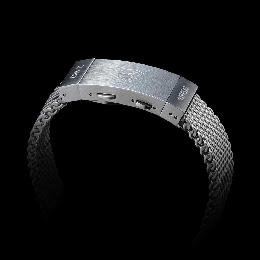 Die OW M-110 M verfügt über ein starkes Edelstahl-Mesh-Armband mit verstärkten Enden und handgebürstetem Finish. Ein großes Maß an Sorgfalt wurde in die Entwicklung dieses neuen Armbands investiert, im Einklang mit dem historischen Ansatz von OW. Neben seiner nahezu unzerstörbaren und professionellen Eignung ist es unserer Meinung nach das bisher komfortabelste Armband. Die robuste gefräste und gravierte Schließe ist bis zu 22 mm verlängerbar, und ein Doppel-Drücker-Entriegelungssystem bietet zusätzlichen Schutz vor versehentlichem Öffnen.
