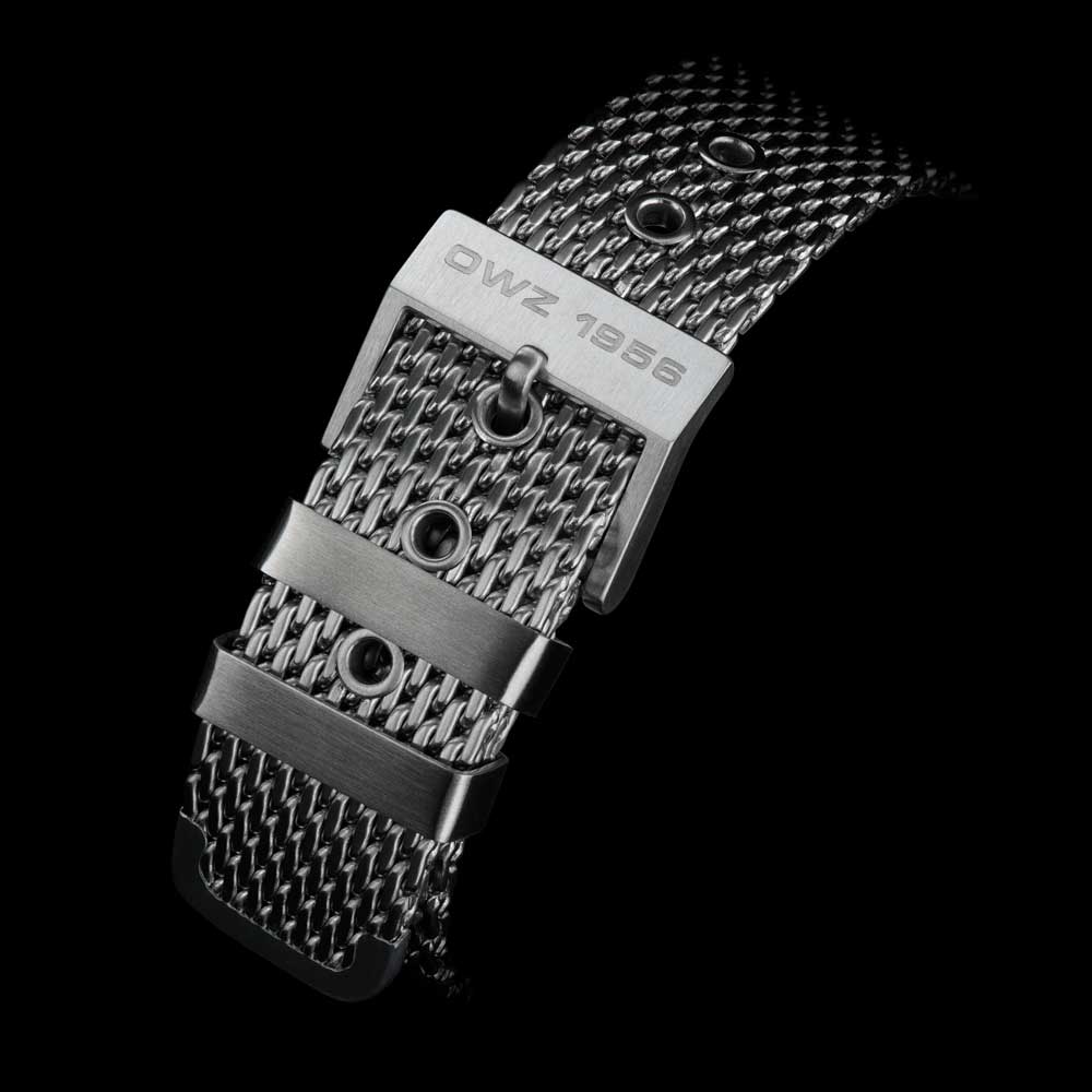 - Dornschließe aus gebürstetem Edelstahl, signiert 'OWZ 1956'