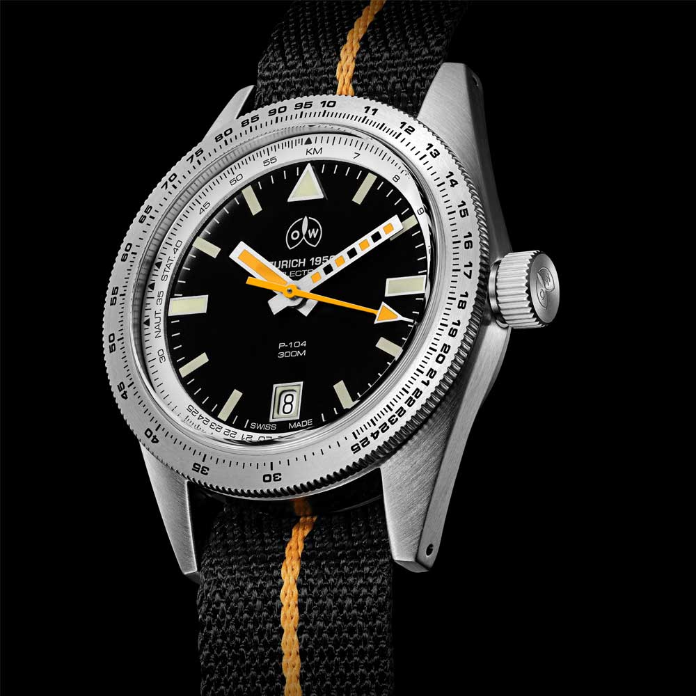 Ganz im Sinne seines historischen Vorgängers ist auch der neue OW P-104 Selectron mit einer bidirektionalen Lünette ausgestattet, die logarithmische Skalen trägt. Dadurch lassen sich mit nur einer Drehung zahlreiche mathematische Berechnungen durchführen – schneller als jede sogenannte Smartwatch. Zudem benötigt er keine Batterie und bleibt selbst unter Wasser bis 300 Meter voll funktionsfähig. Eine wirklich intelligente Lösung!