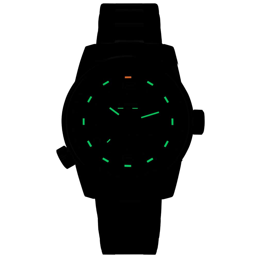 Diese markante Uhr mit einem Durchmesser von 46 mm vereint robuste Materialien mit funktionalem Design. Das PVD-beschichtete Edelstahlgehäuse schützt das präzise Swiss Made Automatikwerk im Inneren und verleiht der Uhr ein modernes, elegantes Aussehen. Das rote Zifferblatt ist mit trigalight- und Super-LumiNova-Leuchtelementen ausgestattet, die zusammen mit den trigalight-Zeigern für hervorragende Ablesbarkeit sorgen, selbst bei schlechten Lichtverhältnissen. Ein entspiegeltes Saphirglas gewährleistet klare Sicht und schützt vor Kratzern. Die verschraubte Krone erhöht die Wasserdichtigkeit der Uhr auf bis zu 10 atm, ideal für den täglichen Gebrauch. Komplettiert wird das Design durch ein robustes NATO-Armband und einen Bandanstoss von 24 mm, das für sicheren Halt und Komfort sorgt.