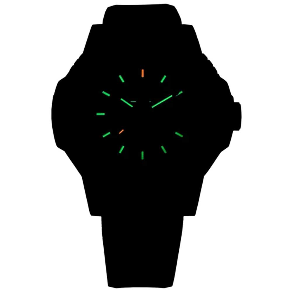 Das Gehäuse aus PVD-beschichtetem Edelstahl überzeugt nicht nur durch Robustheit, sondern auch durch seine matte, reflexionsarme Oberfläche – ein taktisches Detail, das nicht nur ästhetisch, sondern auch funktional ist. Ergänzt wird das Ganze durch ein widerstandsfähiges Kautschukarmband, das auch unter widrigsten Bedingungen zuverlässig sitzt. Mit einem Durchmesser von 46mm und einem Bandanstoß von 22mm bietet die Uhr eine starke Präsenz, ohne dabei an Komfort einzubüßen.