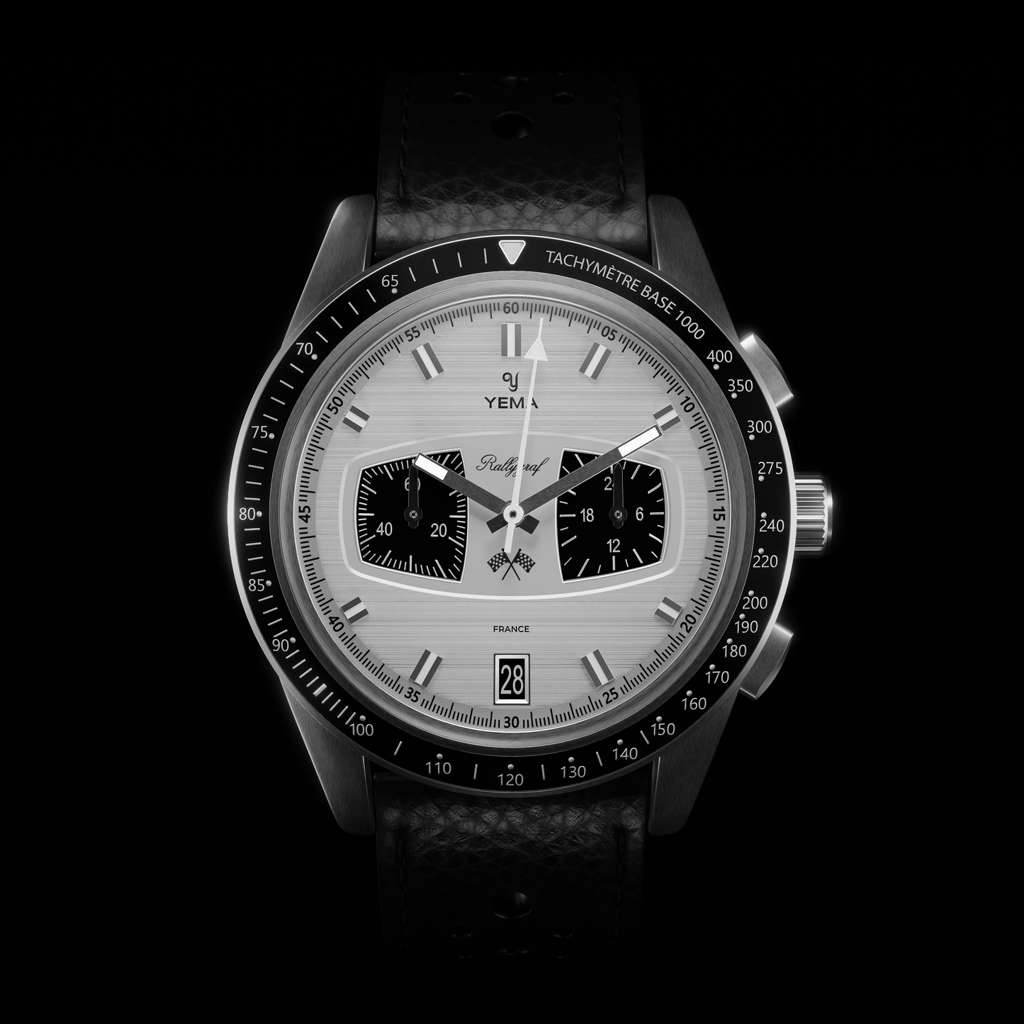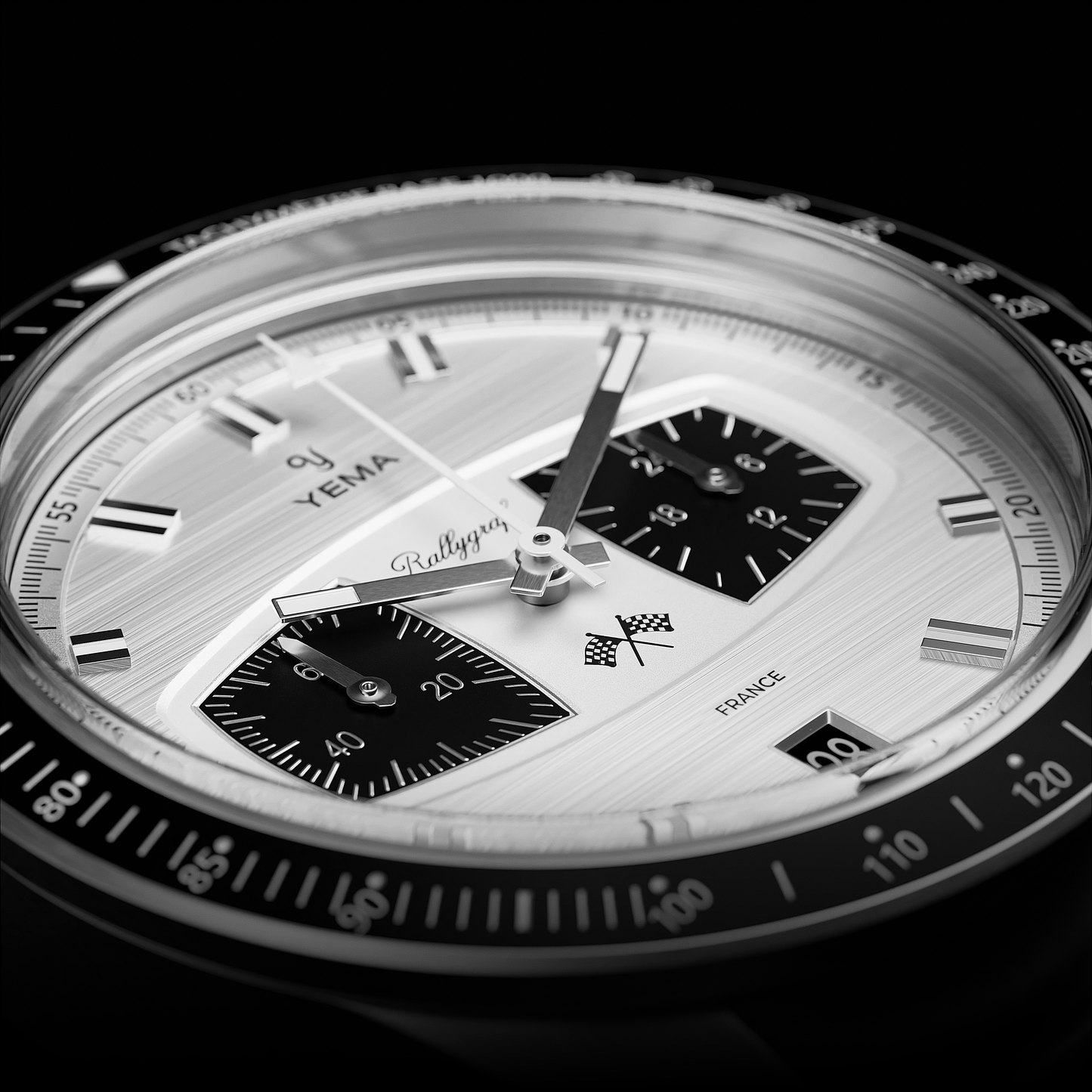 Der YEMA Rallygraf Panda II ist eine moderne Hommage an die ikonischen Panda-Chronographen, die sich durch ein unverwechselbares Zifferblattdesign auszeichnen. Das 40 mm große Edelstahlgehäuse vereint sportliche Eleganz mit einer klaren Retro-Ästhetik, die perfekt für Motorsportfans und Uhrenliebhaber ist. Seinen Namen verdankt die Uhr dem weißen Zifferblatt mit den markanten schwarzen Chronographen-Anzeigen (Bi-Compax-Layout), die an das Gesicht eines Pandas erinnern und einen starken Kontrast bieten.
