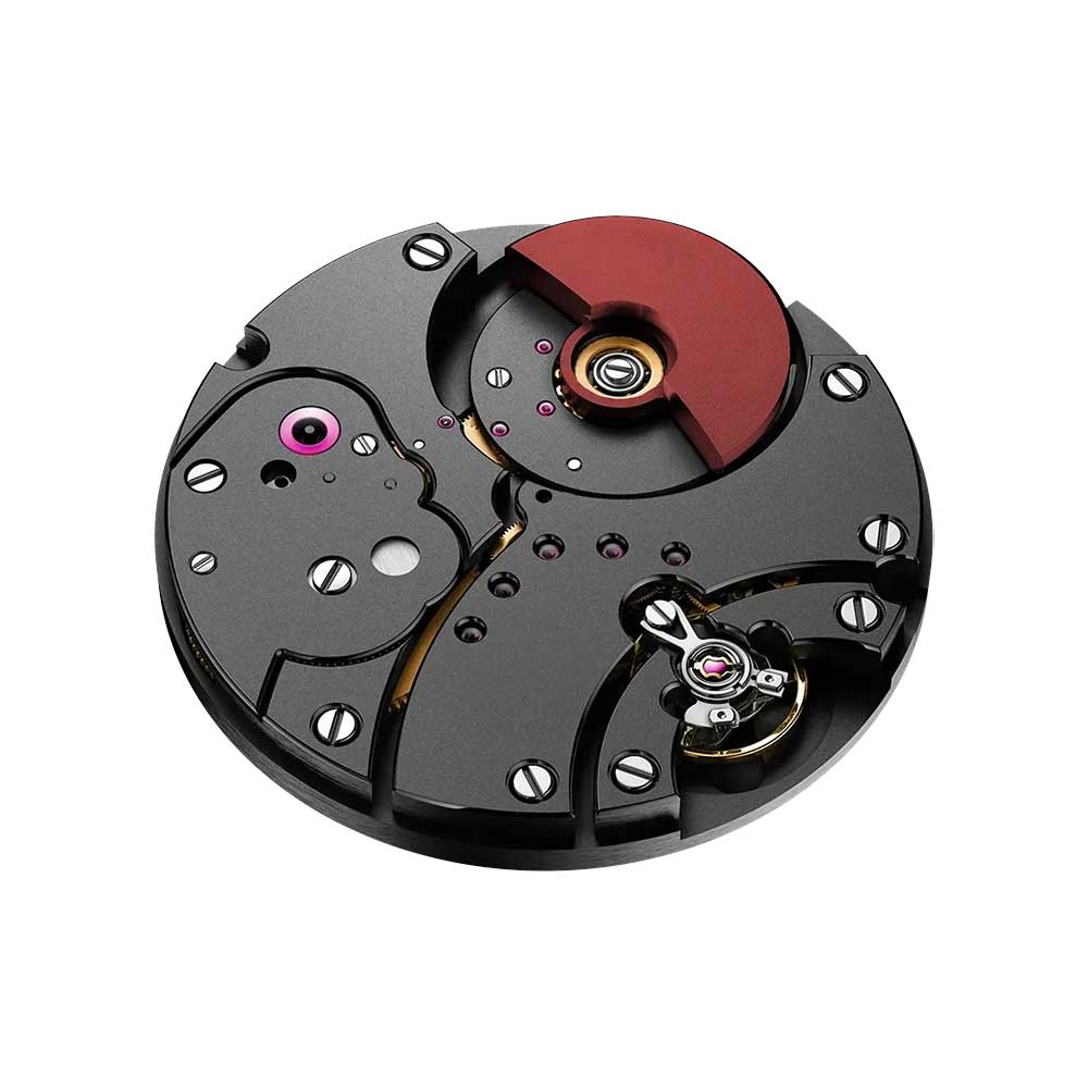 - Armband: 2 hochwertige FKM-Kautschukarmbänder (schwarz und bordeauxrot), Faltschließe aus Titan Grad 5 mit schwarzer DLC-Mikrobestrahlung